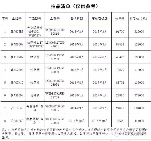 受委托,我公司定于2016年11月24日上午9:00在石家庄市石清路9号河北公共资源大厦使用网络电子竞价方式公开拍卖旧机动车一批。本次拍卖竞买保证金伍万元整。竞买保证金到账截止日期为2016年11月22日17:00 。