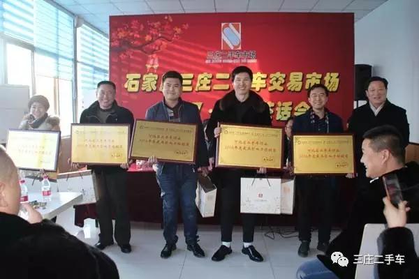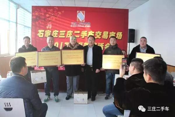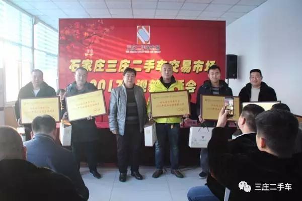 首先石家庄三庄二手车交易市场总经理李现锋做2016年度三庄二手车交易市场工作总结报告,他指出2016年是跨越的一年,忙碌的一年,有为的一年。全体员工全身心投入到工作中去,不怕吃苦,克服困难,顺利完成了市场各项任务指标,增强了市场整体竞争力。同时,李总对2017年的工作做出了部署并提出了要求。随后,由石家庄三庄二手车交易市场常务副总经理毕生魁宣读了“2016年度二手车行业最具影响力经销商”、 “2016年度二手车行业诚信经营经销商”、“2016年度二手车行业优秀服务经销商”表彰决定,该表彰决定是由广大商户投票选举、市场部筛选,经市场总经理办公会专题研究决定,审核最终选定由品牌影响大、经营规模大、理念超前、管理先进、诚实守信、热心服务的商户。获得“2016年度二手车行业最具影响力经销商”的是泰康国际精品车刘建才、车腾汽车维修有限公司郑仁鹏、优信二手车石家庄分公司李雪海、诚信车险刘志芳、源通旧机动车有限公司李瑛;获得“2016年度二手车行业诚信经营经销商”的是君丰汽车赵军峰、第一展厅张海峰、佳环中旺精品车行靳军利、至诚车业刘庄、大飞车行冯飞、东尊名车汇武连成、宝优名车汇黄涛、小宋车行宋少杰、诚成车行李泉、陆尊名车汇盖惠敏、鸿益精品车行焦彦军、展辉车行刘占辉、文榜车行杨柳明、金浩鑫名车汇刘立军、杨子车行杨福生;获得“2016年度二手车行业优秀服务经销商”的是乐车汇精品车行张庆、广源车业王建喜、宏宇精品车行王云涛、金昌名车王根红、尊品名车李重忻、速美特名车汇姜维震、车猫 麦臣车业高立广、宏润通汽车贸易销售有限公司朱保国、涛子车行刘占涛、河北友谊名车汇张庆泽、源达车行董如意、河北大坤汽车销售有限公司戴兵、鑫车汇名车行刘文涛、顺日行公司冀忠强、东风雪铁龙(龙信)二手车孔宪民。在场的各位领导为获奖商户颁奖,并鼓励广大商户在新的一年里再接再厉,在今后的经营中,诚实守信、热情服务,一同为三庄二手车市场的发展腾飞奉献力量。泰康国际精品车行董事长刘建才代表优秀经销商上台发表了获奖感言,感谢三庄二手车市场在这一年为广大商户所做出的努力,表示未来将一如既往的配合市场的各项工作,与市场共同成长。